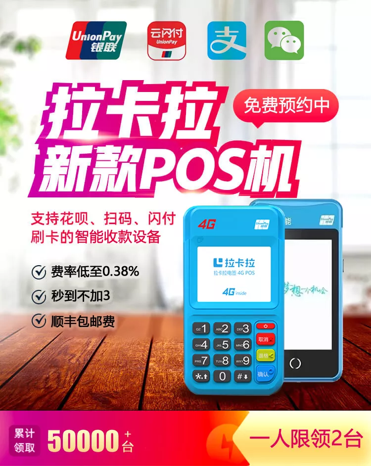 拉卡拉POS机直营机构,在线预约,全国顺丰包邮。